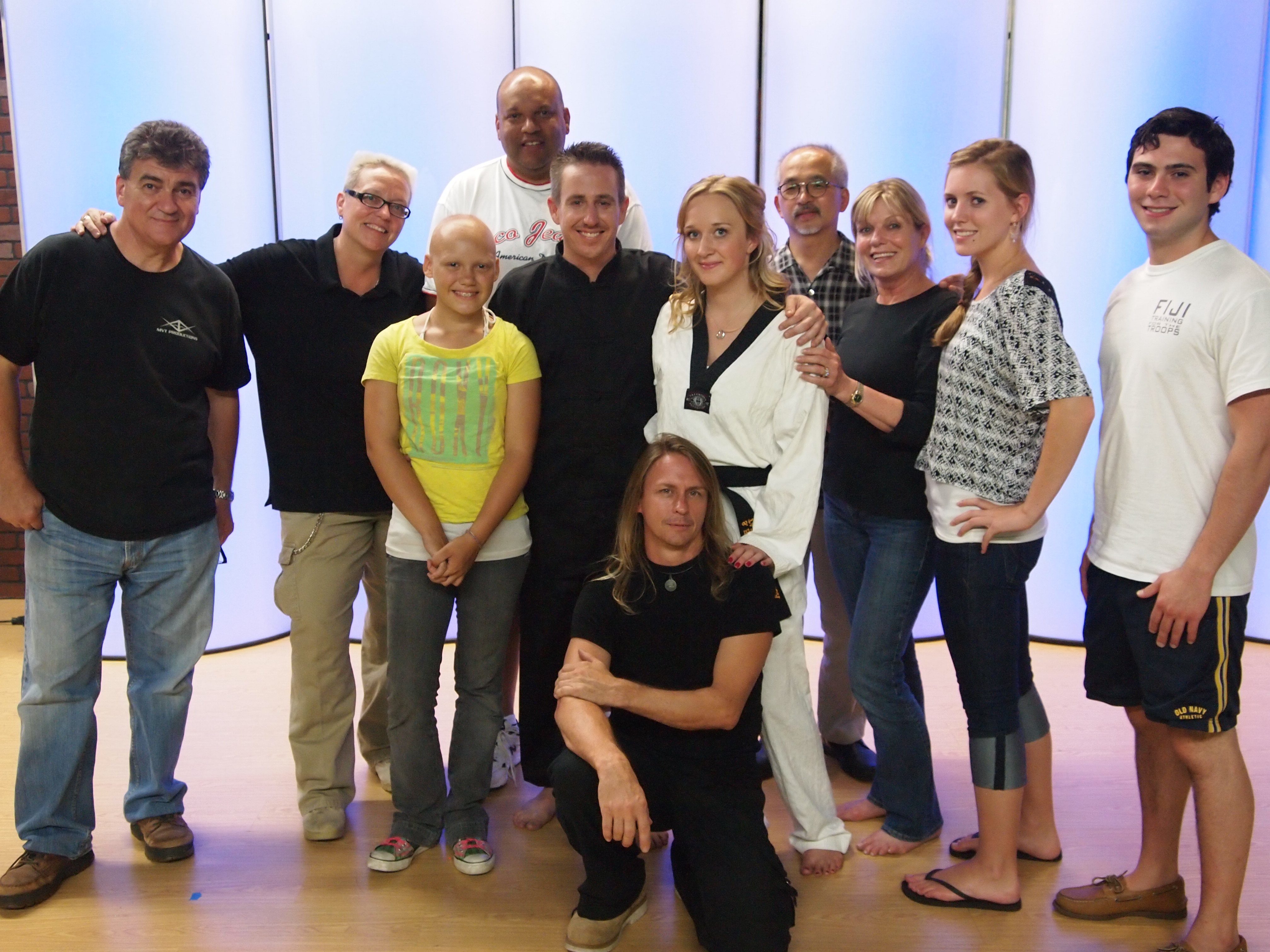 George, Dar, Maddy, Chad, Tony, Mark, Dallas, Takafumi, Maggie, Jacquelyn, and David on the set